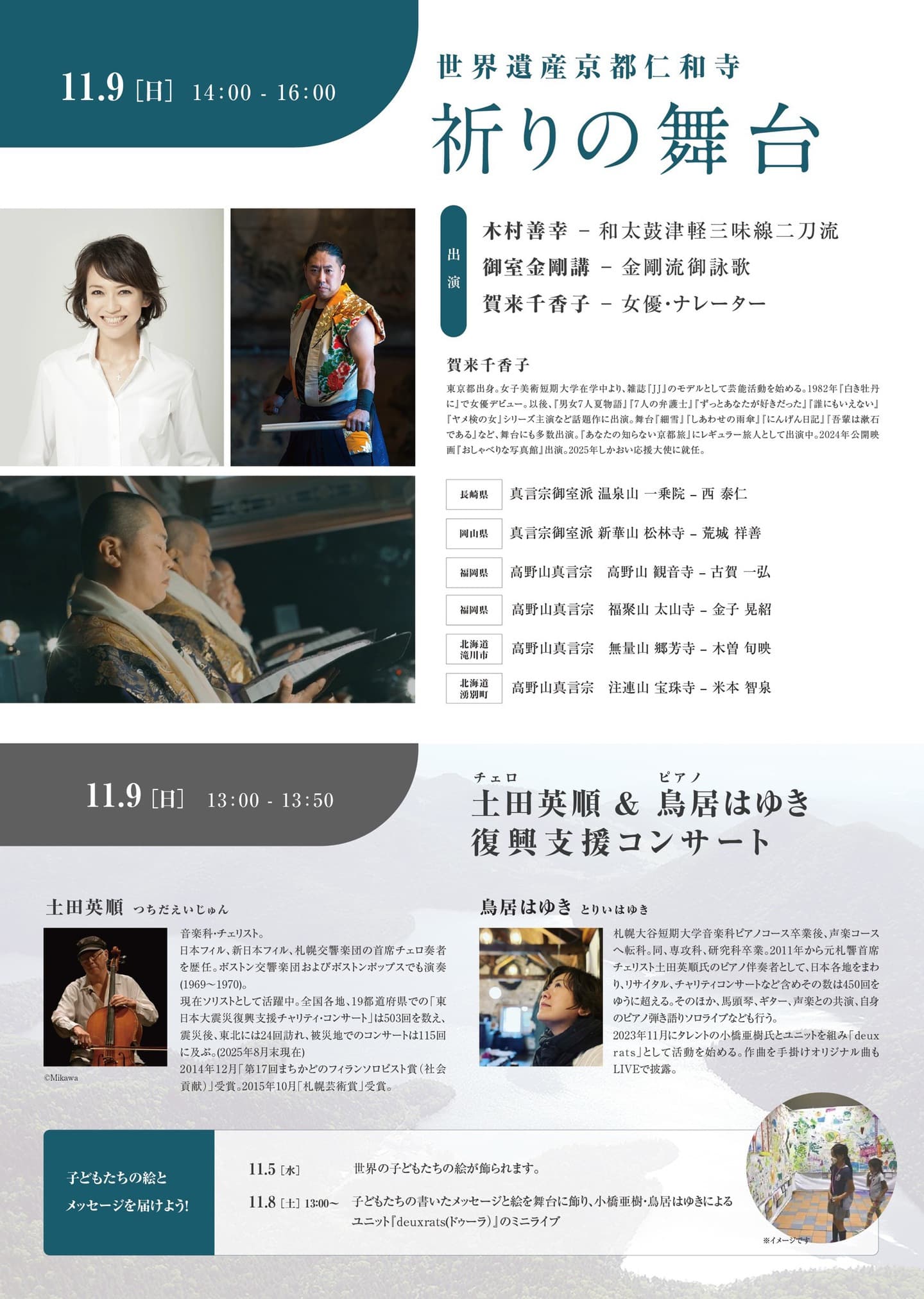 タイトル | 第3回 鹿追芸術祭「愛・平和」 御詠歌で和大太鼓で祈りを捧げる世界遺産京都仁和寺来道 |
